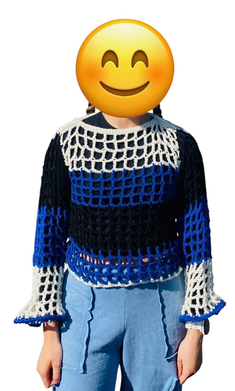 Sporty and graphic, this version plays with high contrast and bold stripes. Great with denim, high-waisted pants, or layered over a tank for an edgy streetwear feel.