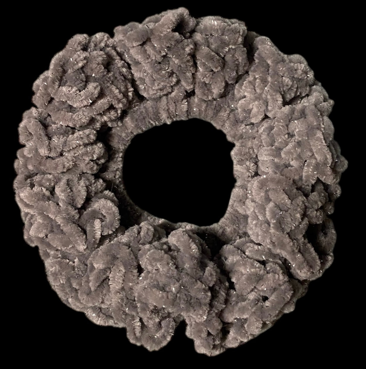 Sophisticated with a hint of shimmer, Graphite Glimmer is a modern neutral that catches the light just right. This luxe charcoal scrunchie adds texture and elegance to any bun or ponytail—perfect for office to evening.