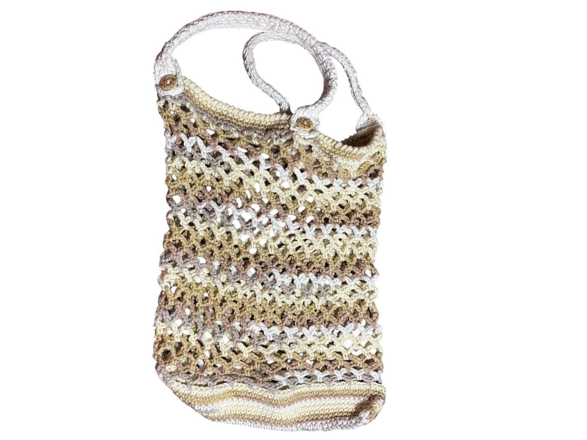 Natural, warm, and versatile. The Oatmilk & Honey Market Tote features soft caramel and cream striping with short, sturdy handles. It even has button details for extra flair!